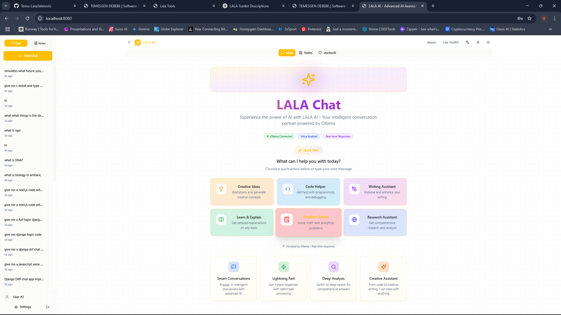 **LALA AI** is a personal AI assistant that chats, takes notes, and answers questions based on user context. you can see the screenshots below. It uses advanced AI models to understand and respond to user queries, making it a versatile tool for productivity and information retrieval. LALA AI can be integrated into various applications, providing users with a seamless experience in managing their tasks and accessing information quickly.